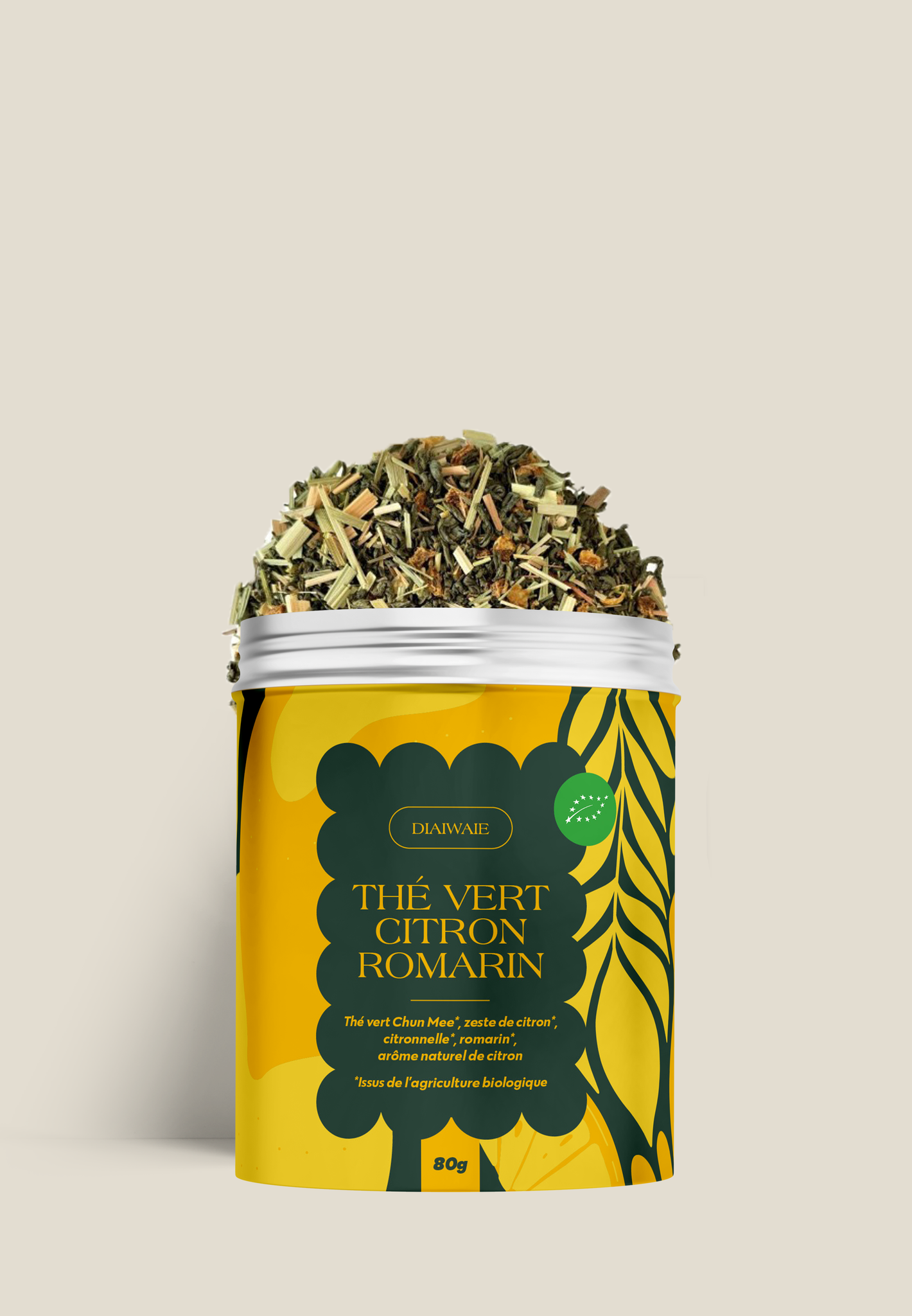 đ ThĂ© Vert Citron Romarin Bio : un thé ensoleillĂ©, Ă la fois douce et stimulante, pour retrouver fraĂźcheur et clartĂ© dâesprit Ă chaque gorgĂ©e.